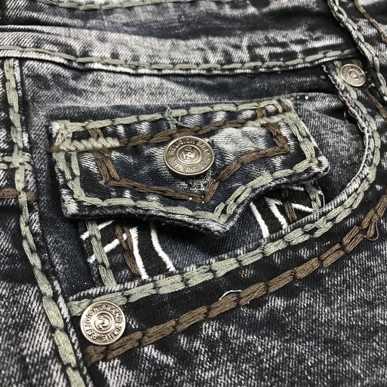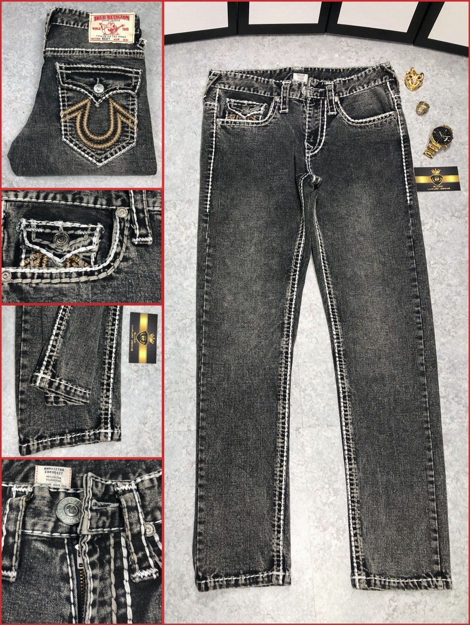 Sản phẩm này được sử dụng một công nghệ may phải đánh giá siêu việt. Một mũi khâu thường có 4 đến 5 sợi chỉ, điều quan trọng những đường chỉ đều rất chắc chắn và đề nhau. Hãy kiếm tra test thật kĩ, nếu sản phẩm đường chỉ may lệch lạc, hoặc bị rách thì chiếc quần đó cũng là hàng giả. Bởi công nghệ may của True Religion không bao giờ có cho ra những đường chỉ may như vậy.