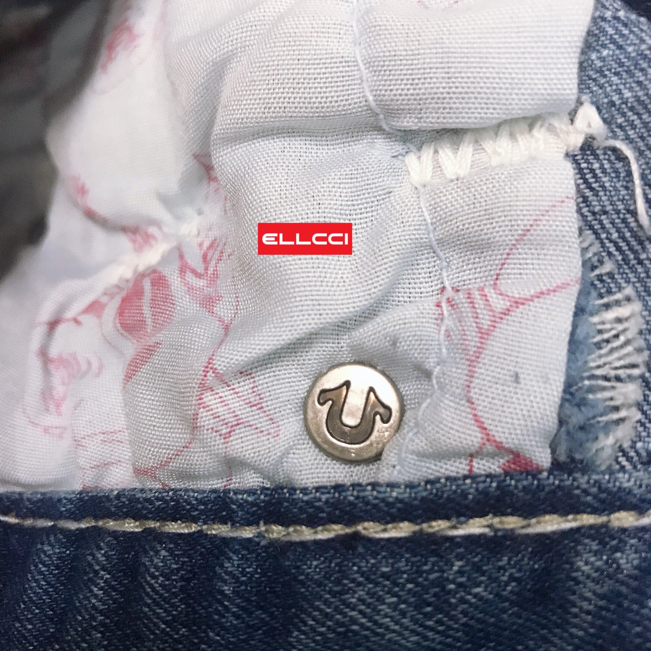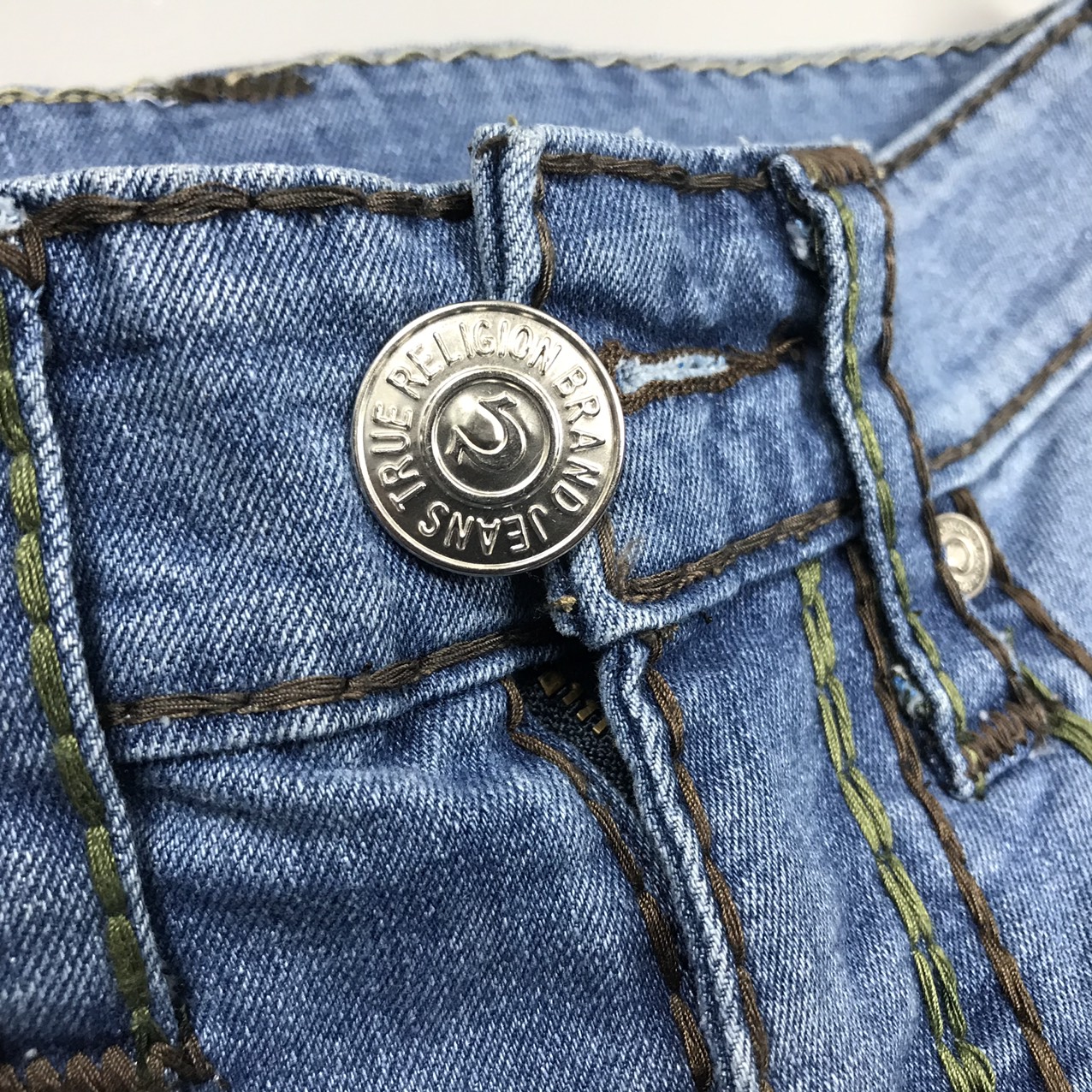 Đừng bỏ qua những điểm nhỏ này, bởi đây cũng là một trong những yếu tố rất quan trọng để bạn có thể nhận biết được đâu là chiếc quần thật hay giả. Phần nút cài (khuy) sẽ được dập nổi logo chính giữa và dùng chưa True Religion được chạy theo hình vòng tròn. Phía mặt trong nút cài còn có logo hình chữ U. Đây là một trong những điều mà chiếc quần hàng giả, hàng fake không bao giờ có.